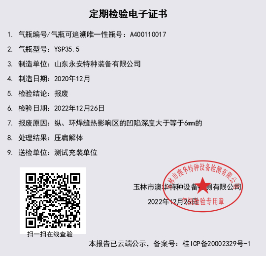 报废原因:纵、环焊缝热影响区的凹陷深度大于等于6mm的