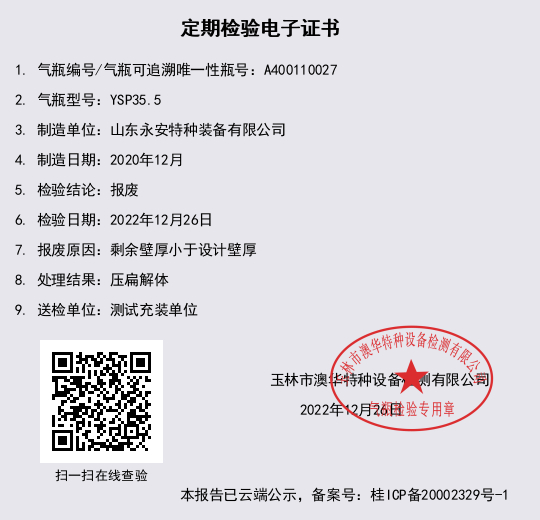报废原因:剩余壁厚小于设计壁厚