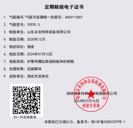 报废原因:护罩用螺丝联接到瓶体的钢瓶